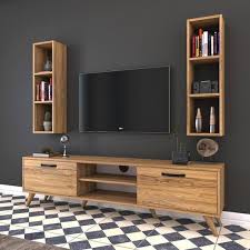 Rani A9 Duvar Rafli Kitaplikli Tv Unitesi Duvara Monte Dolapli Modern Ayakli Tv Sehpasi Ceviz M2 Wall Tv Unit Design Tv Room Design Living Room Tv Unit Designs